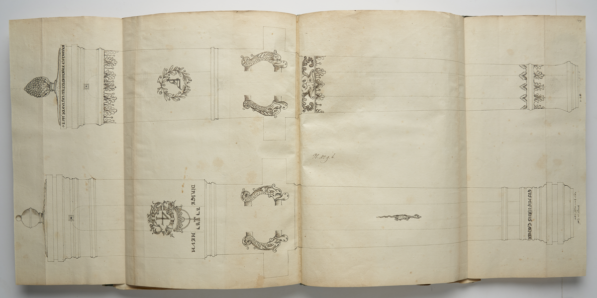 Titel: Ritning av eldrör från Malmö ur en volym som visar troféer och ett mindre antal äldre svenska metallstycken. Dessa ingick i bestyckningen i Stralsund 1671 samt i Helsingborg, Malmö och Landskrona.