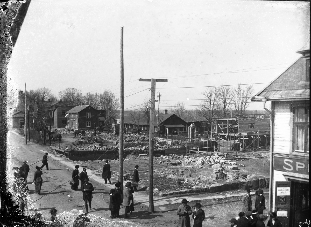 Mellerud efter branden 1915, platsen där Hotel Ottosson stod