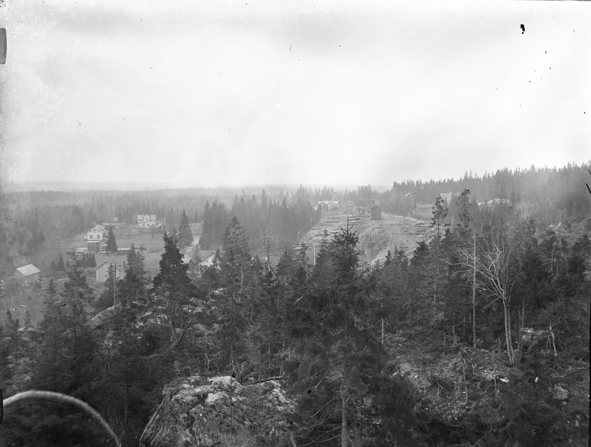 Vy från Kroppefjäll över Dals Rostock och järnvägsstationen. Bilden är tagen tidigt 1920-tal