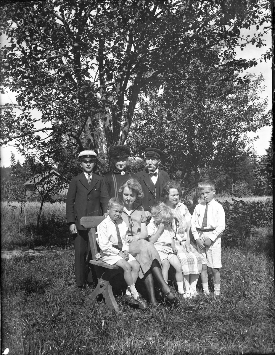 Gruppbild. Troligen fotograferad vid Lurut, Hällan, Gunnarsnäs. Nuvarande adress Eriks väg 6, Dals Rostock.