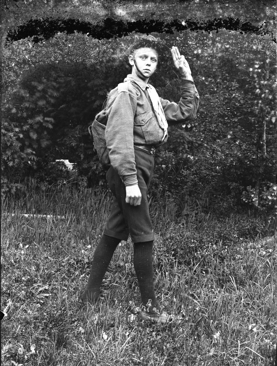 Dals Rostock. En scout. Scouten gör en scouthälsning