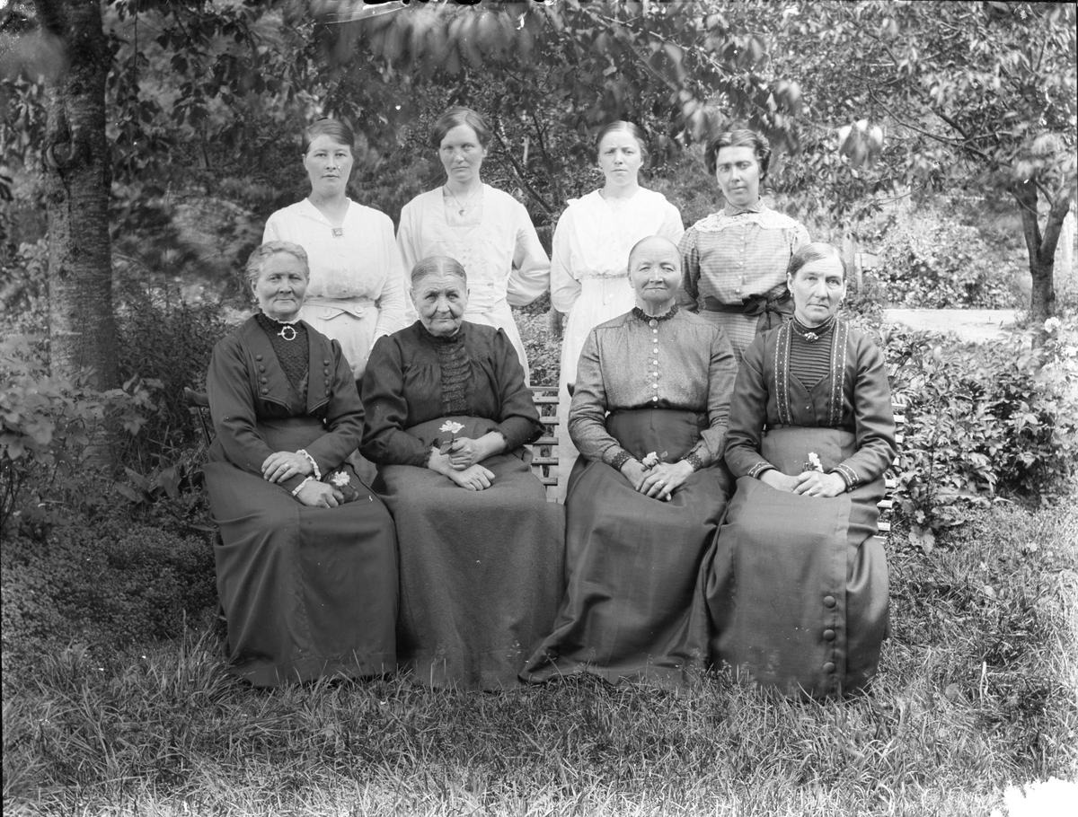 Gruppbild. Möjligen kan det vara taget i Brunnsparken, Dals Rostock.