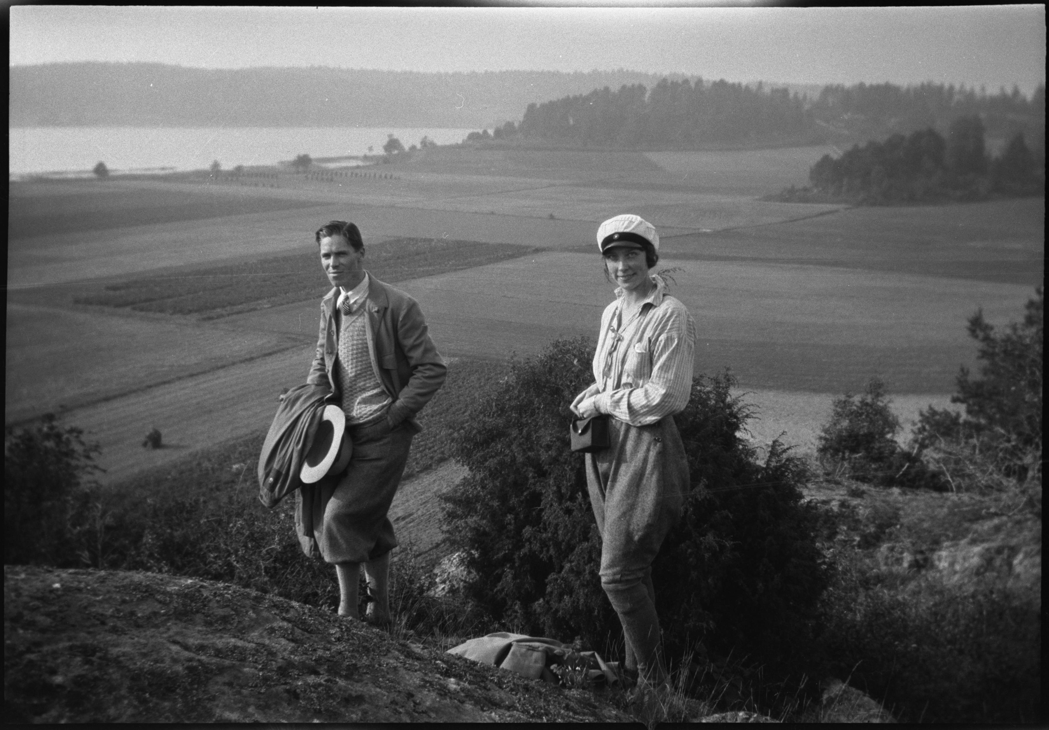 RAÄ-nummer Ösmo 96:1. Boplats vid Brunn. "Brunns stenåldersboplats. Georg Svensson och frk. Lillieqvist."