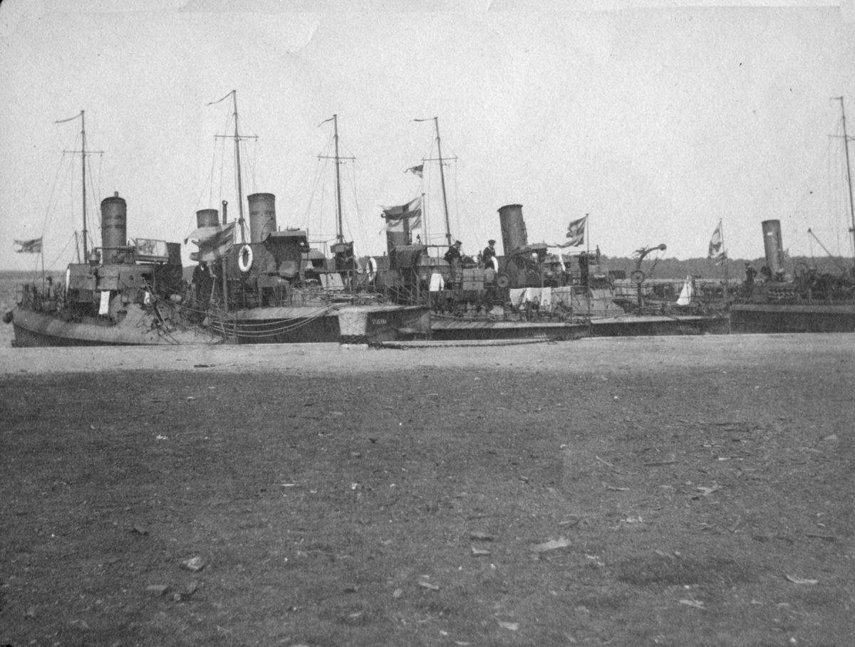 Torpedbåtar, från vänster en oidentifierad klass 2 torpedbåt, Stjerna, Gudur, Gondul och ytterligare ett oidentifierat fartyg.