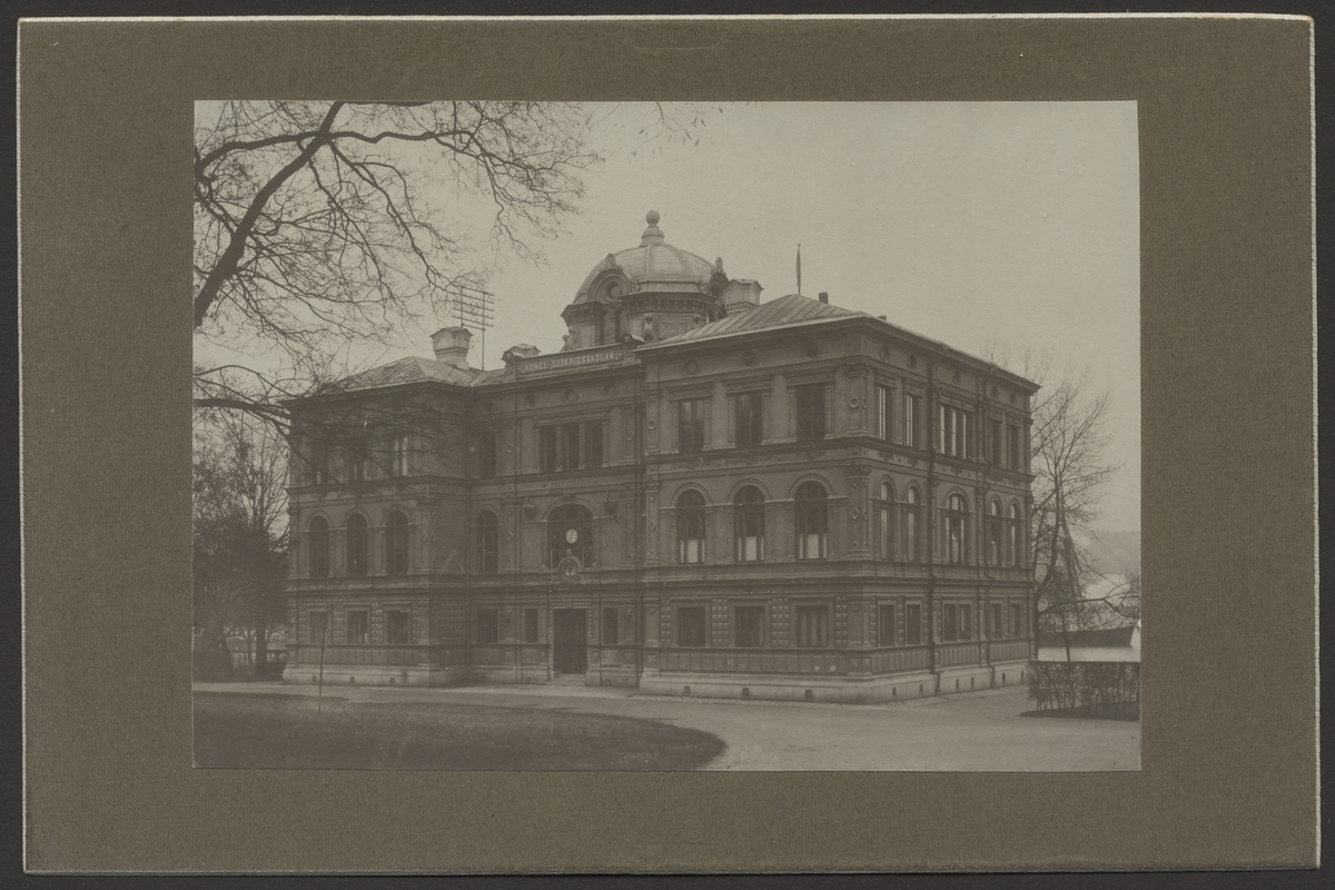 Titel: Bilden visar byggnaden av den kungliga sjökrigsskolan 1897.