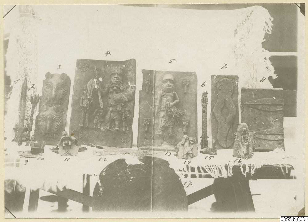 Beskrivning: Beninbronser. Ant.: Benin-saml. utbjuden af S. Strumpf, Hamburg. Gen. bref af 4.XII.03 och 9.I.04. Fot. kopierade af Ax. Lindahl.