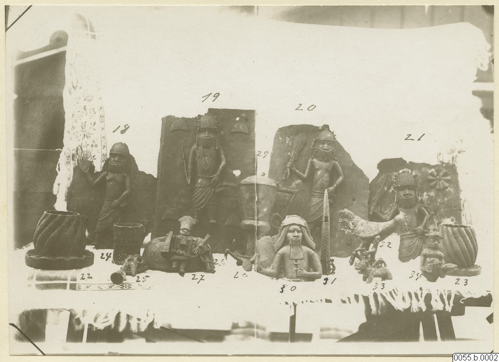 Beninbronser. Ant.: Benin-saml. utbjuden af S. Strumpf, Hamburg. Gen. bref af 4.XII.03 och 9.I.04. Fot. kopierade af Ax. Lindahl.