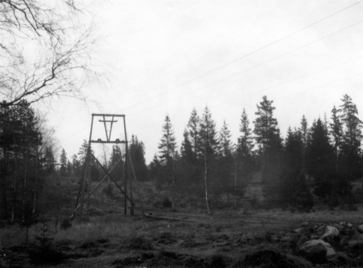 Linbanan från Åkerbydal (Turba) till Tenhult, 2,5 km lång. Med denna fraktade man från mossen torvströ i balar ner till järnvägsstationen i Tenhult. Linbanan anlades 1897, såldes och togs ned 1936 när bilar började användes i stället. Eftersom det var kuperad terräng så var stolparna olika höga. Denna, en av de högsta, på ägorna till Mjälaryd Norrgård 3:4.