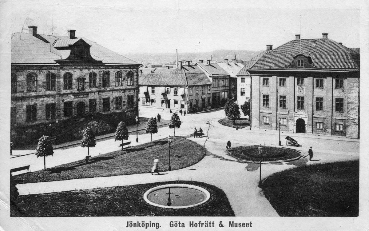 Göta Hovrätt och Muséet vid Hovrättstorget i Jönköping. Vykort skrivet 1916.
