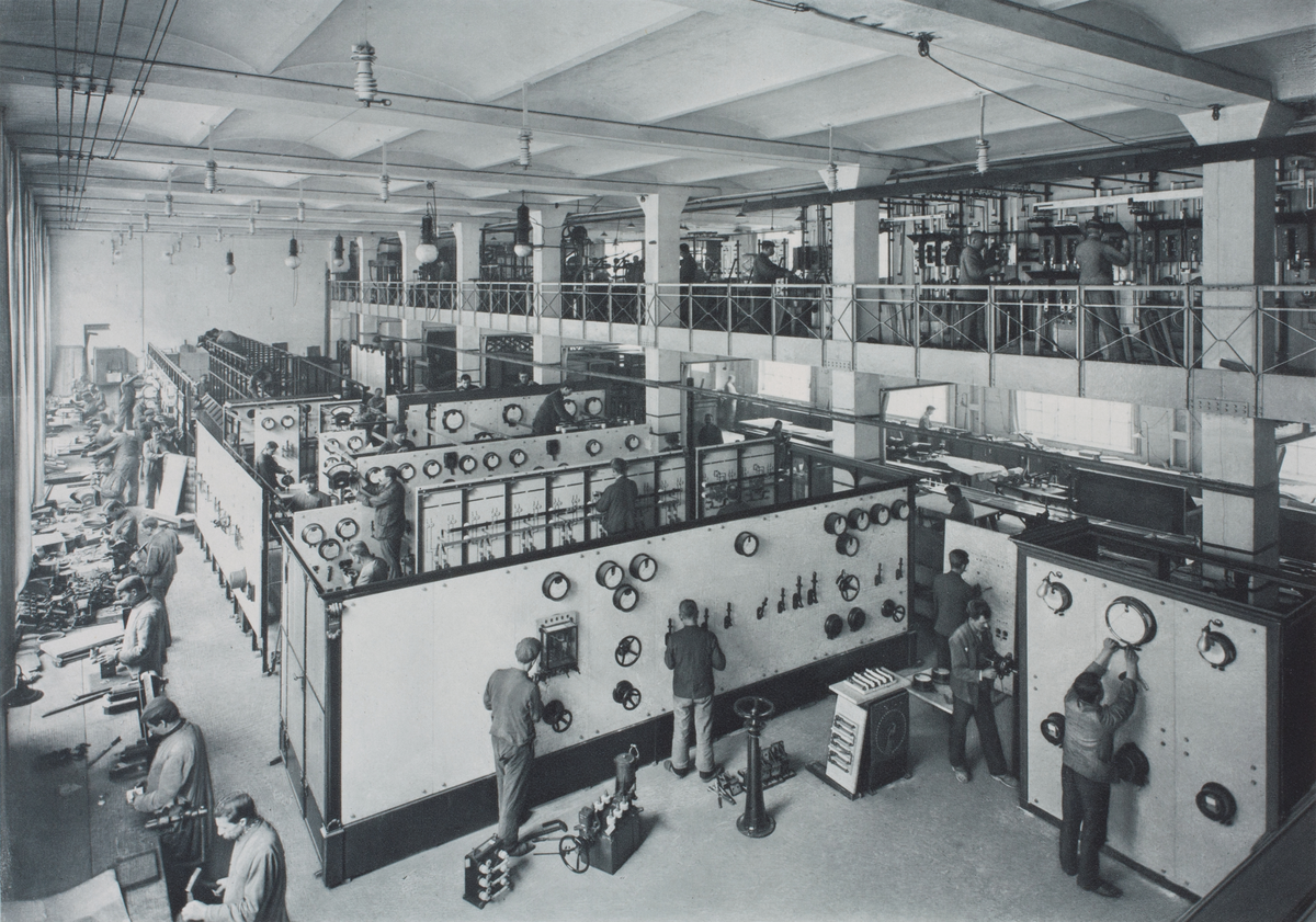 Män i arbete. (Grossmaschinenfabrik). (Gehäsenvickelei).
