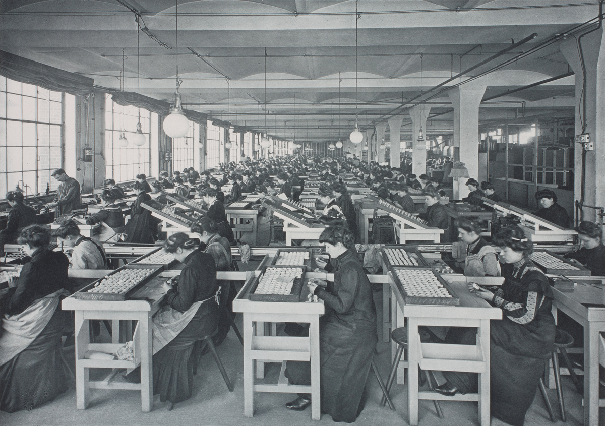 Nernstlampsfabrik (Brennermontage). Kvinnor i arbete.