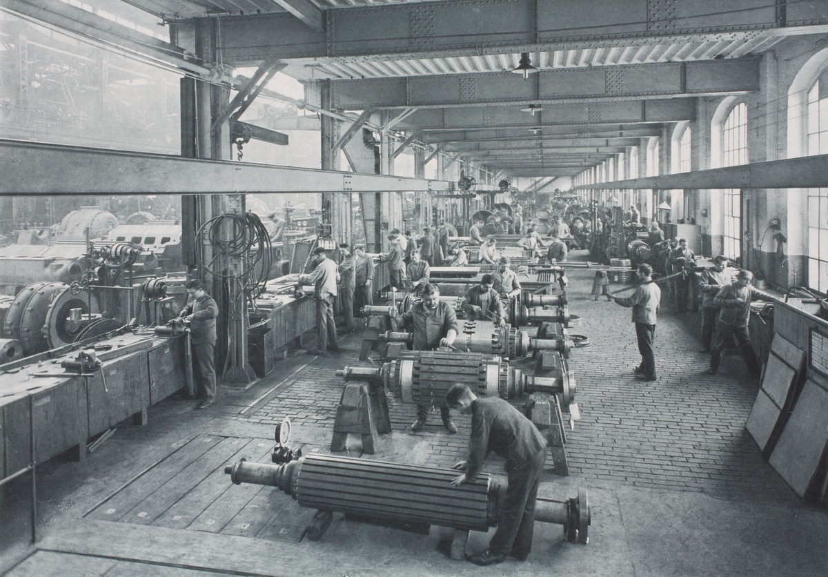Turbinfabrik. (Induktorenbau) Män i arbete.