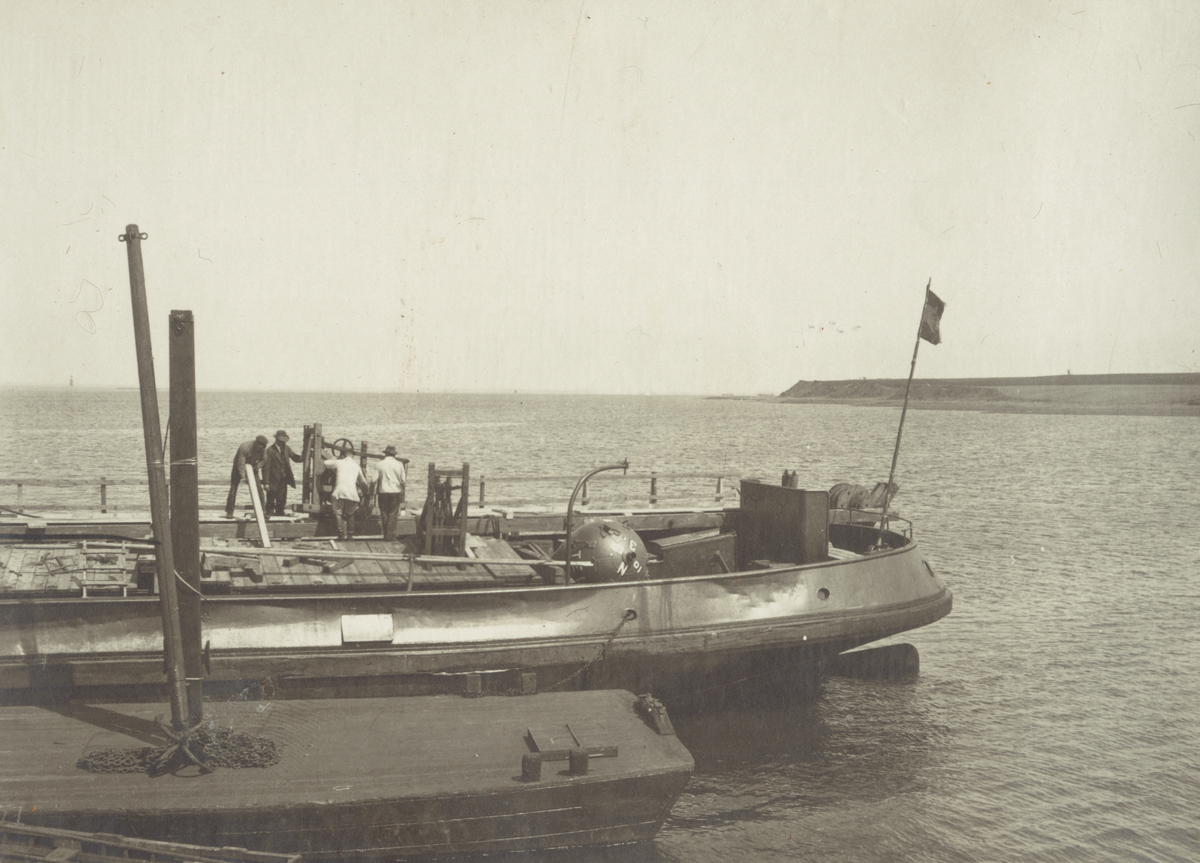Titel: Kabeldragning Kämpinge - Zarrenzin, september 1921. Mellan Bock och Zarrenzin. Ur albumet Telegrafverkets Sjökabelarbeten 1919-1921.