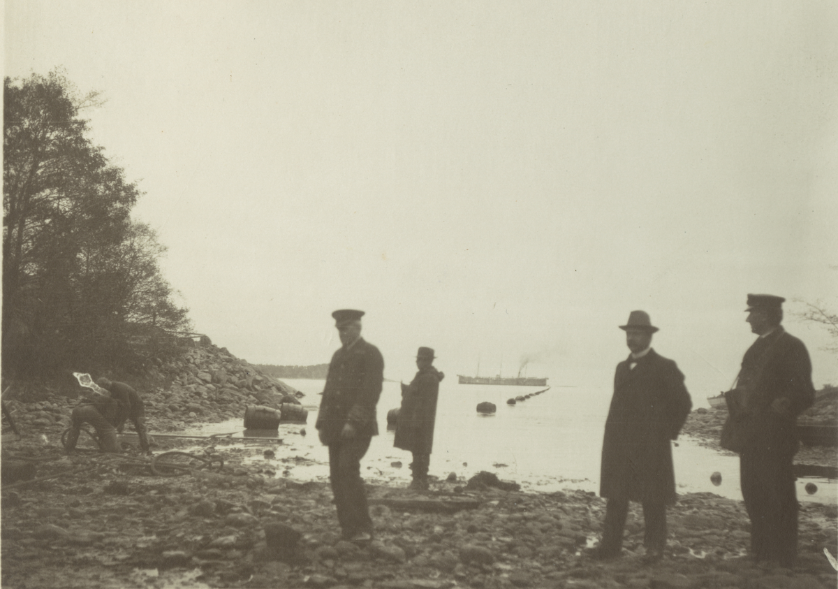 Kabeldragning Nynäshamn - Ire, oktober 1920. Landning i Nynäshamn. Ur albumet Telegrafverkets Sjökabelarbeten 1919-1921.