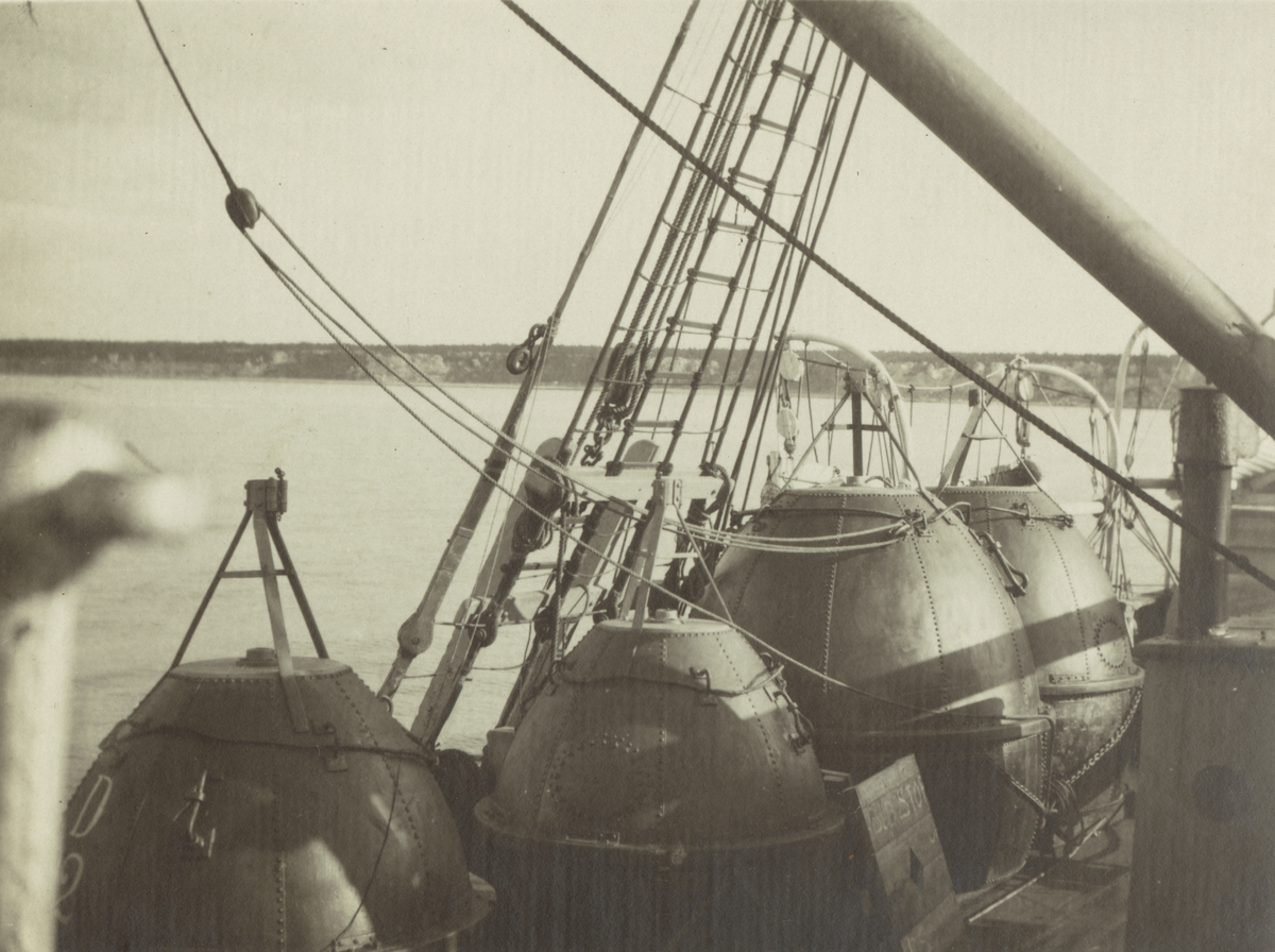 Kabeldragning Nynäshamn - Ire, oktober 1920. Babords bojar. Ur albumet Telegrafverkets Sjökabelarbeten 1919-1921.