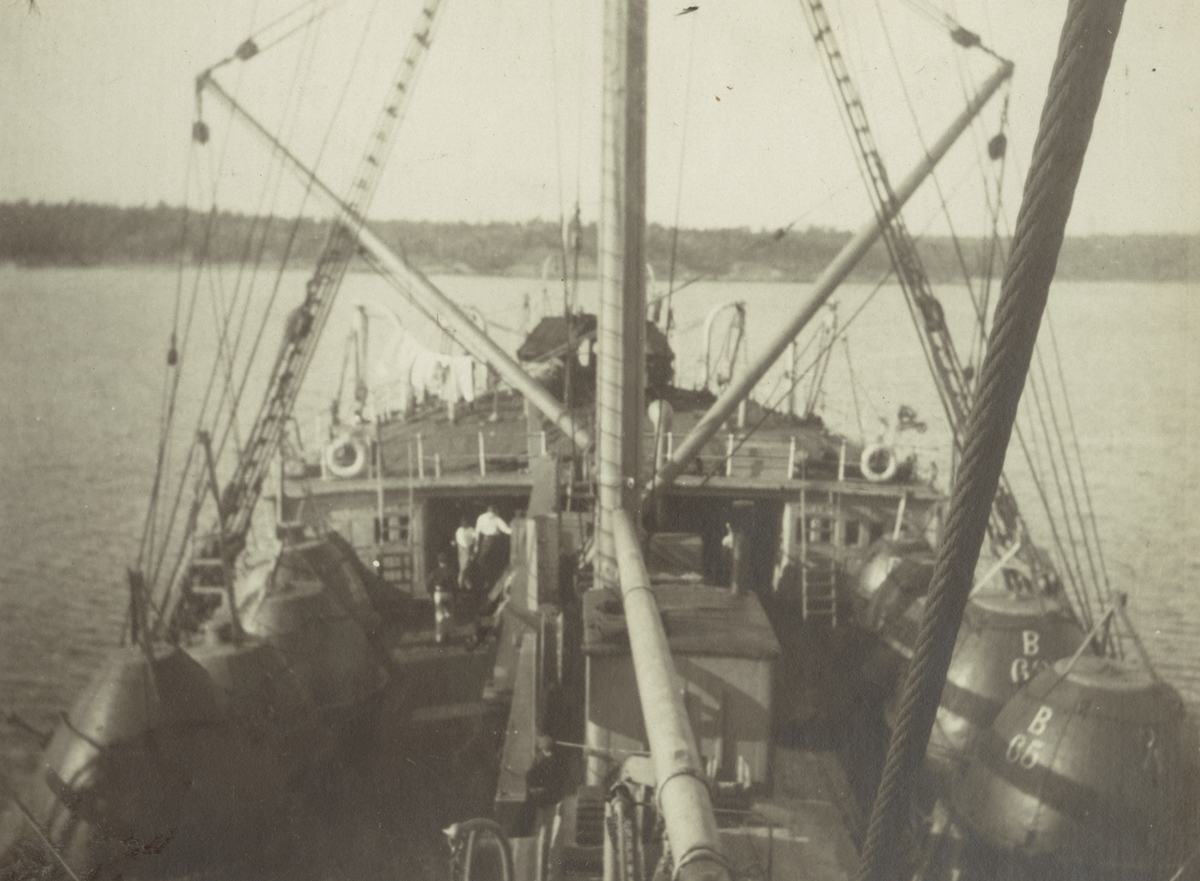 Kabeldragning Nynäshamn - Ire, oktober 1920. Fördäck. Ur albumet Telegrafverkets Sjökabelarbeten 1919-1921.