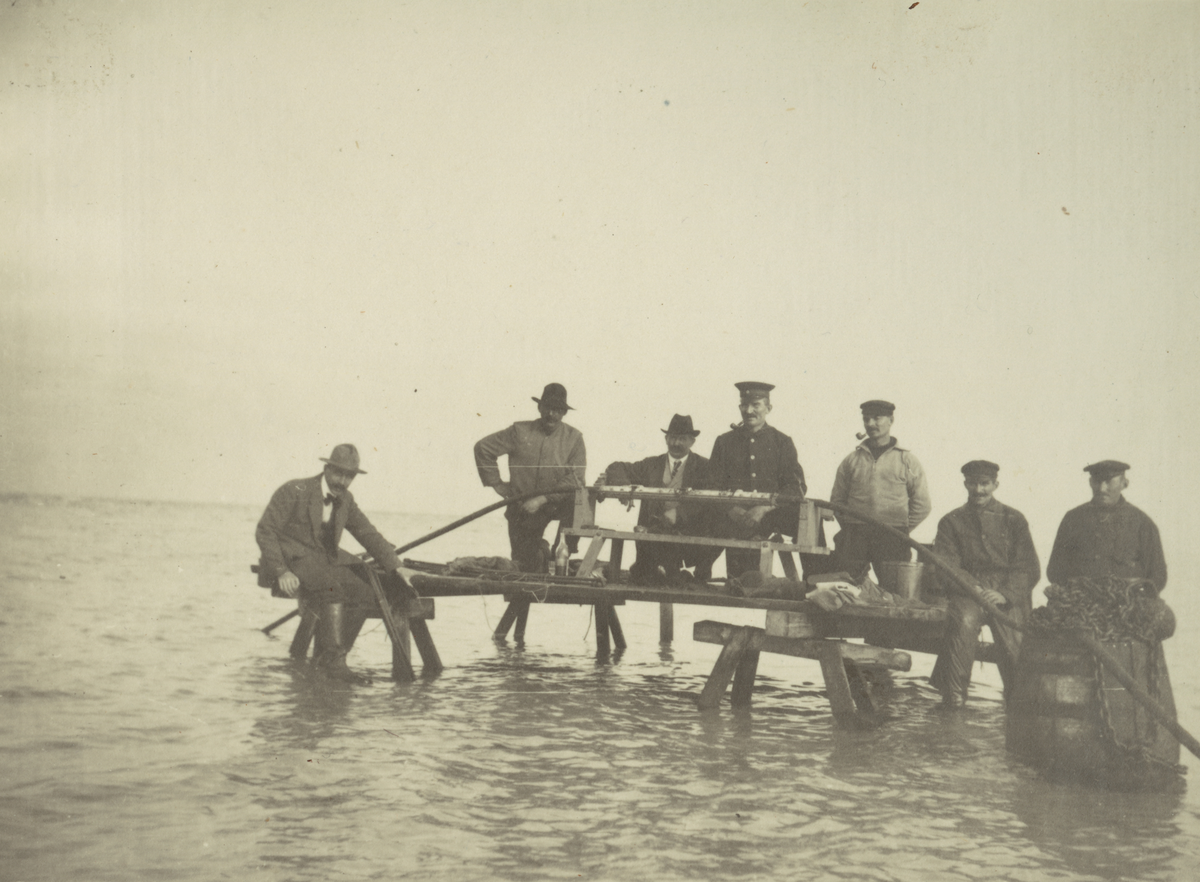 Kabeldragning Kämpinge - Zarrenzin, oktober - november 1919. 20 oktober. Lödställe vid Bock. 2 km från land. Ur albumet Telegrafverkets Sjökabelarbeten 1919-1921.