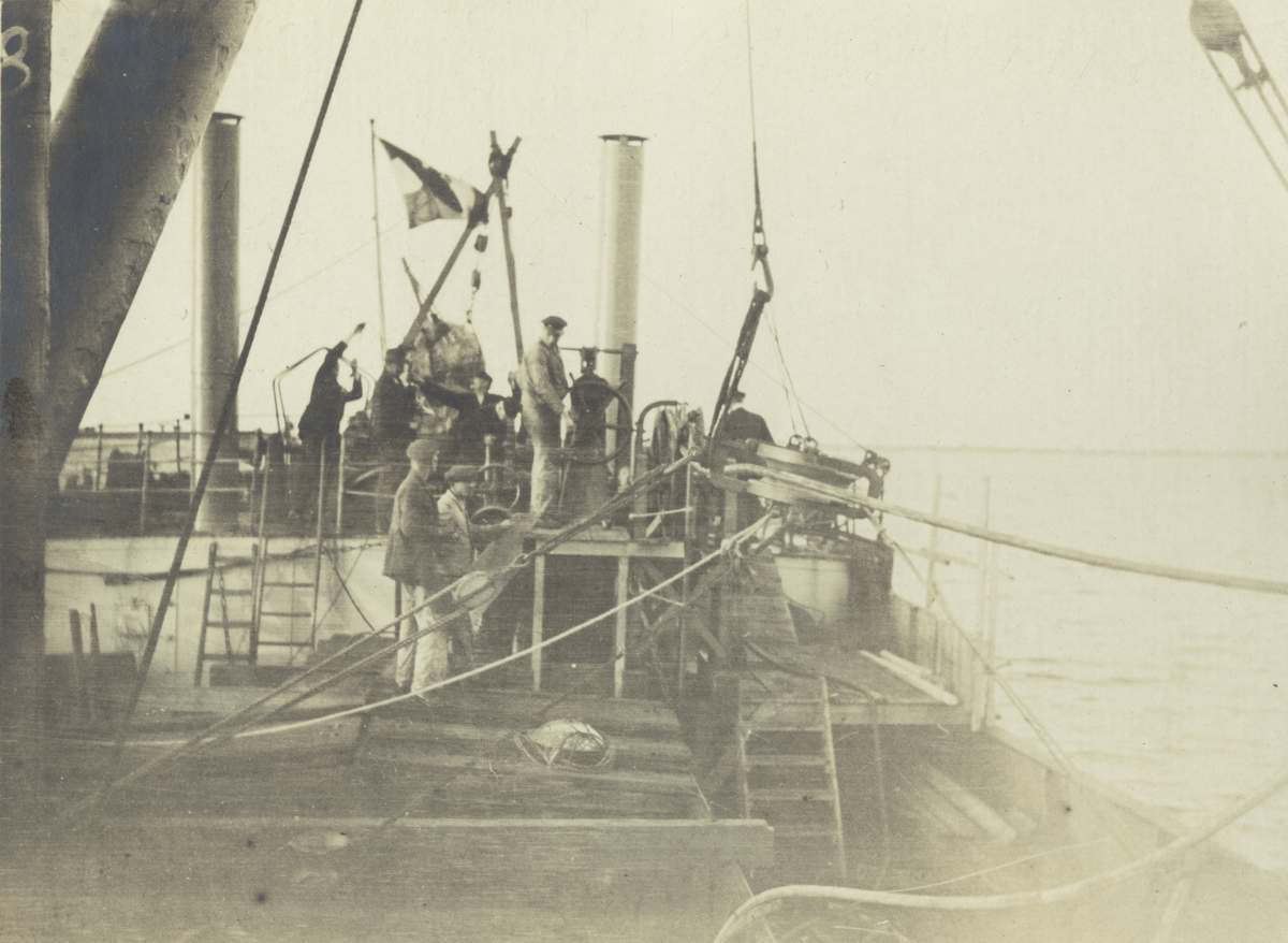 Kabeldragning Kämpinge - Zarrenzin, september 1921. Urläggning från förrummet. Ur albumet Telegrafverkets Sjökabelarbeten 1919-1921.