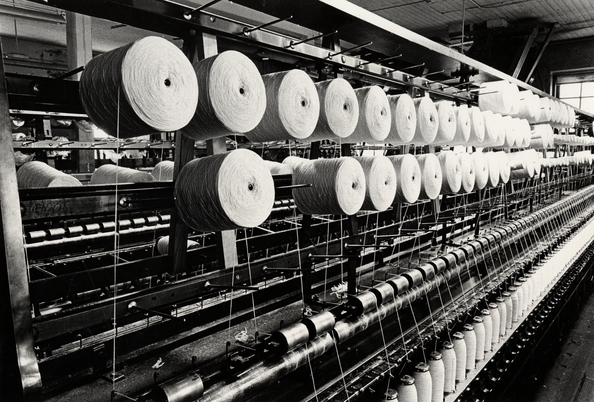 Göteborgs Remfabrik. De stora tvinnmaskinerna på tredje våningen. Ur album: Göteborgs Remfabrik 1891-1976.