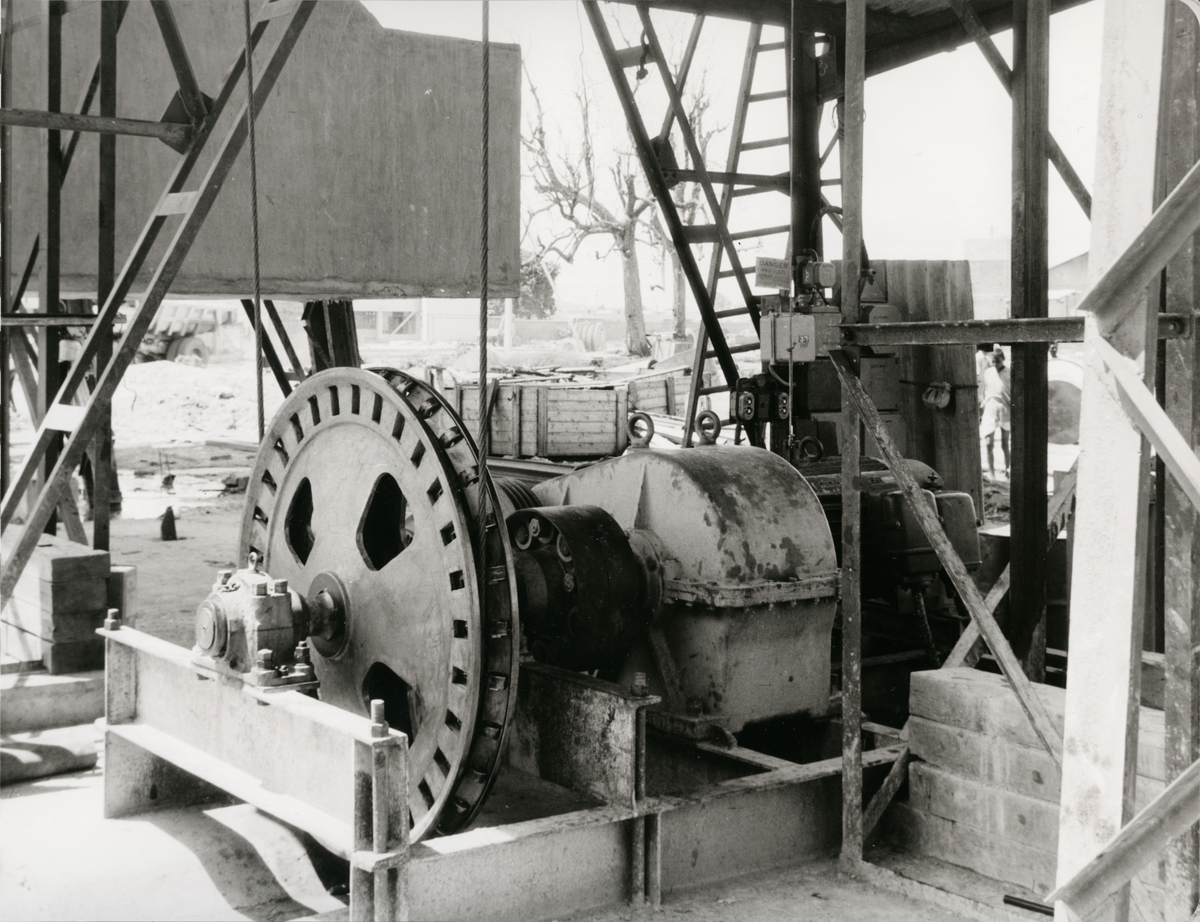 Titel: The Associated Cement Company's linbana vid Mancherial, Hydarabad, Indien. Längd: 4365 m, kapacitet: 200 ton kalksten per timme. Linbanan började användas 1958. Ur album: Nordströms: AB Nordströms Linbanor Stockholm, Sweden.