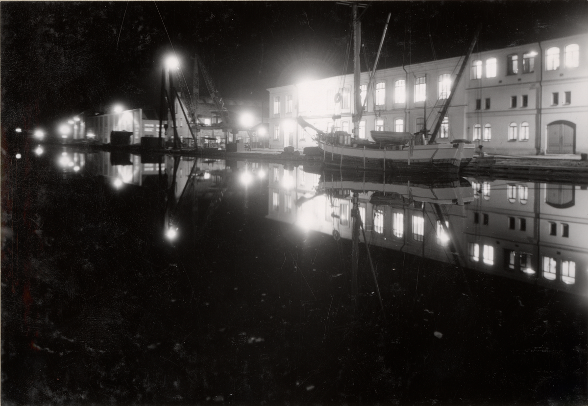 Motala Verkstad. Huvudkontoret i kvällsbelysning. Ur album: Motala Verkstad 10 okt 1936.