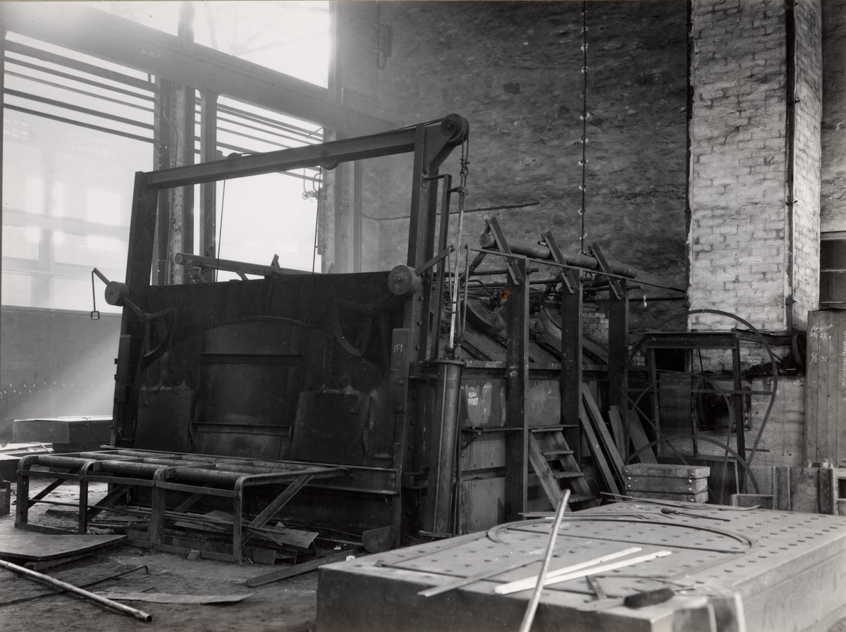 Motala Verkatsd. Plåtslageriverkstaden. Oljeeldad ugn. Ur album: Motala Verkstad 10 okt 1936.