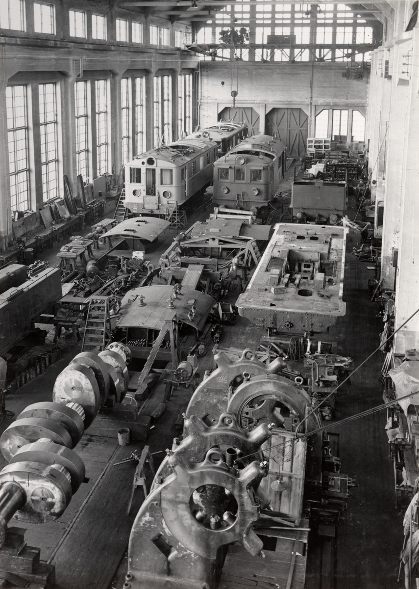Motala Verkstad. Maskinverkstaden. Montagehall för elektriska lok. Ur album: Motala Verkstad 10 okt 1936.