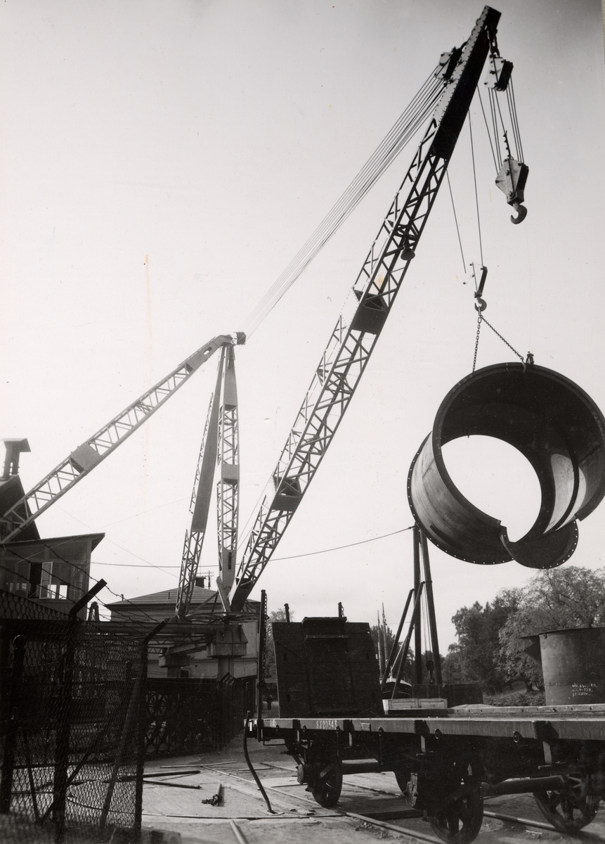 Motala Verkstad. Derrickkranen vid kajen. Ur album: Motala Verkstad 10 okt 1936.