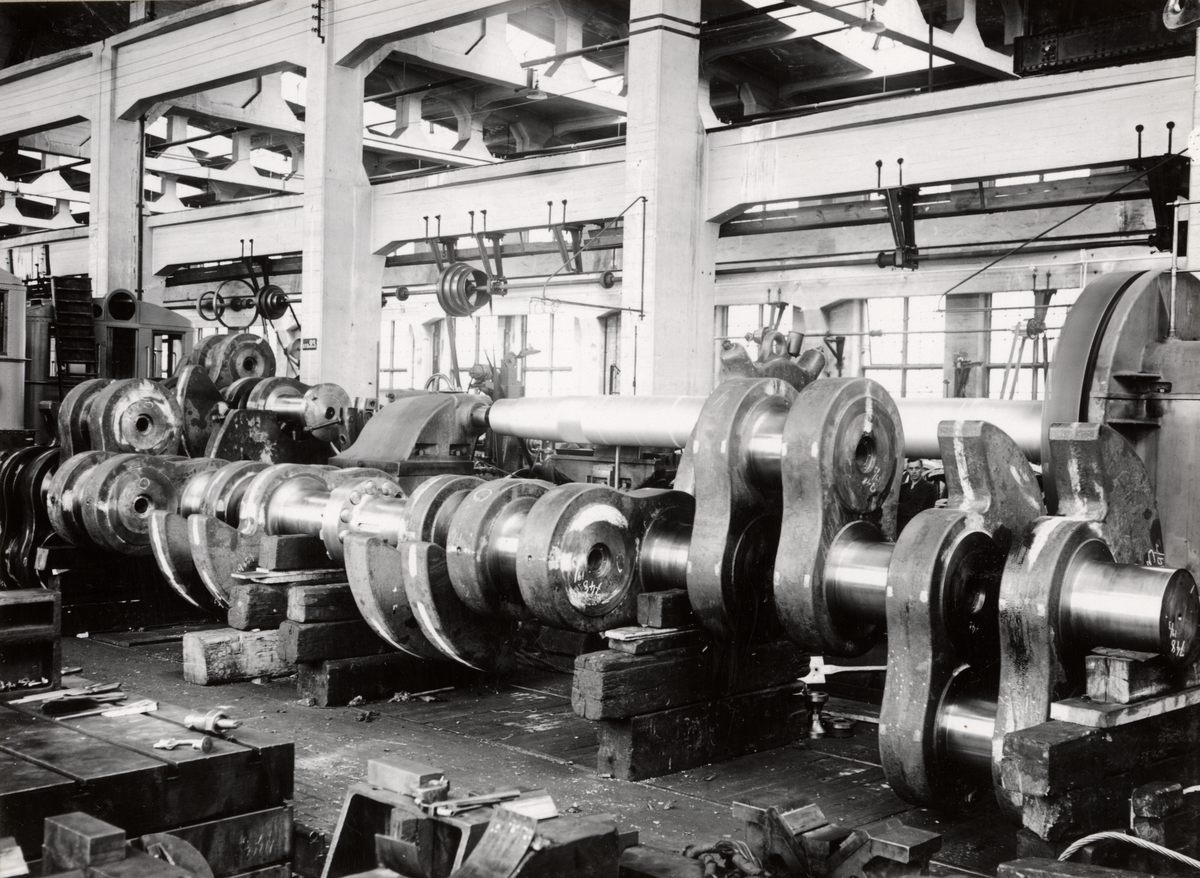 Motala Verkstad. Smide. Byggd vevaxel för dieselmotor. Ur album: Motala Verkstad 10 okt 1936.