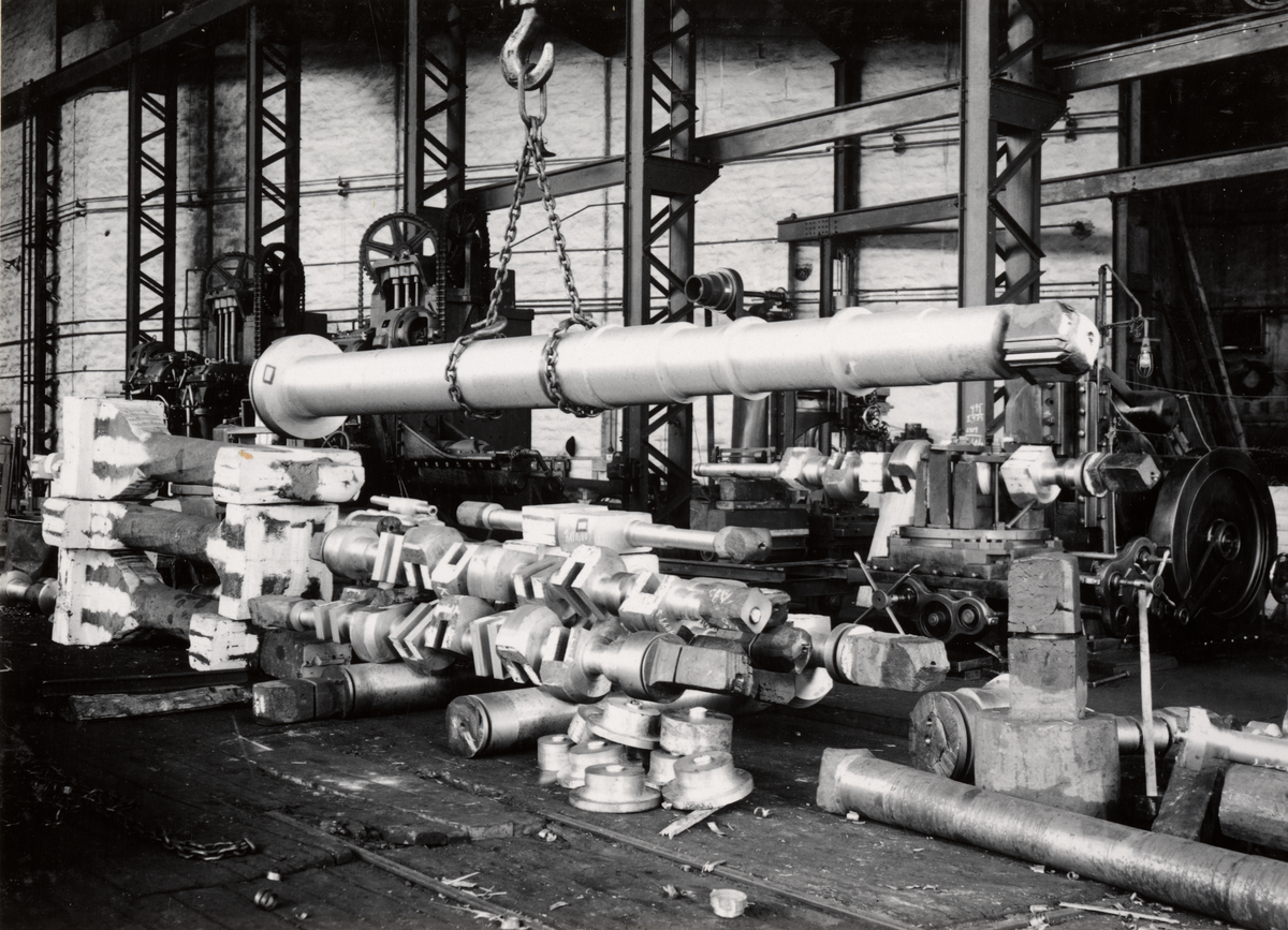 Motala Verkstad. Smide. Propelleraxel och smidda vevaxlar. Ur album: Motala Verkstad 10 okt 1936.