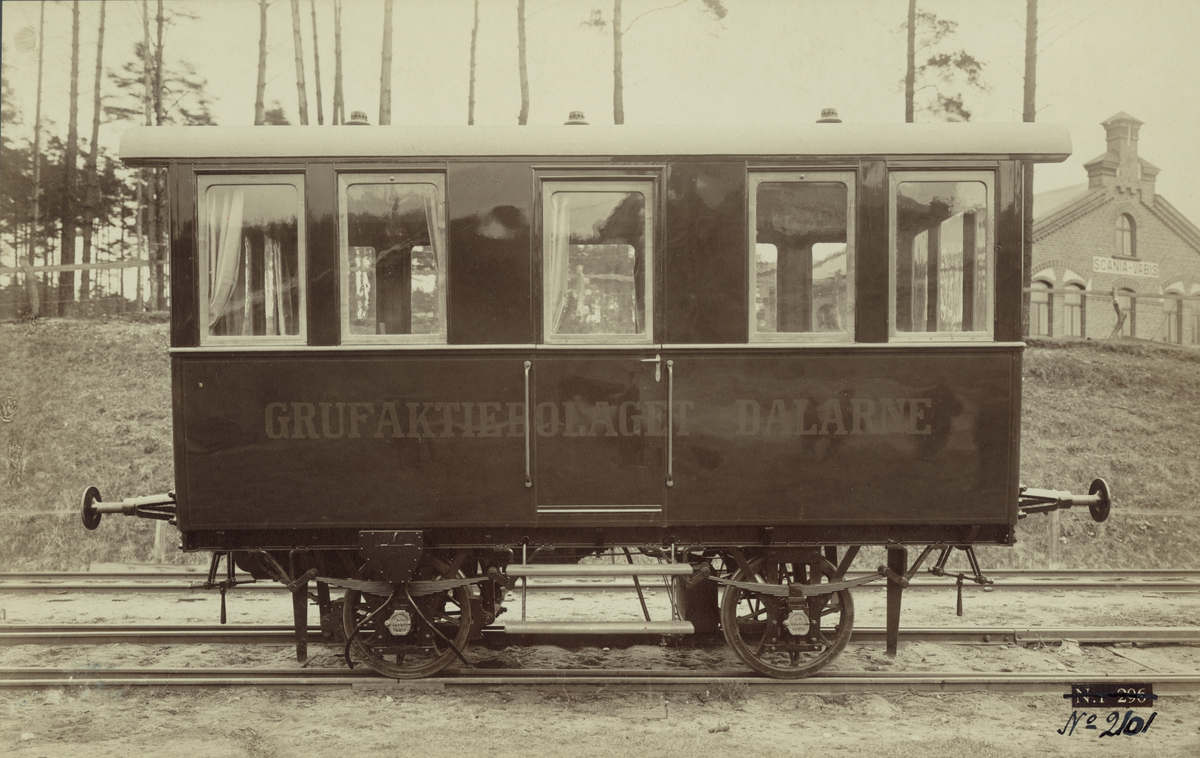 Tågvagn för GHrufaktiebolaget Dalarne (Dalarna). Ur album för Scania-Vabis.
