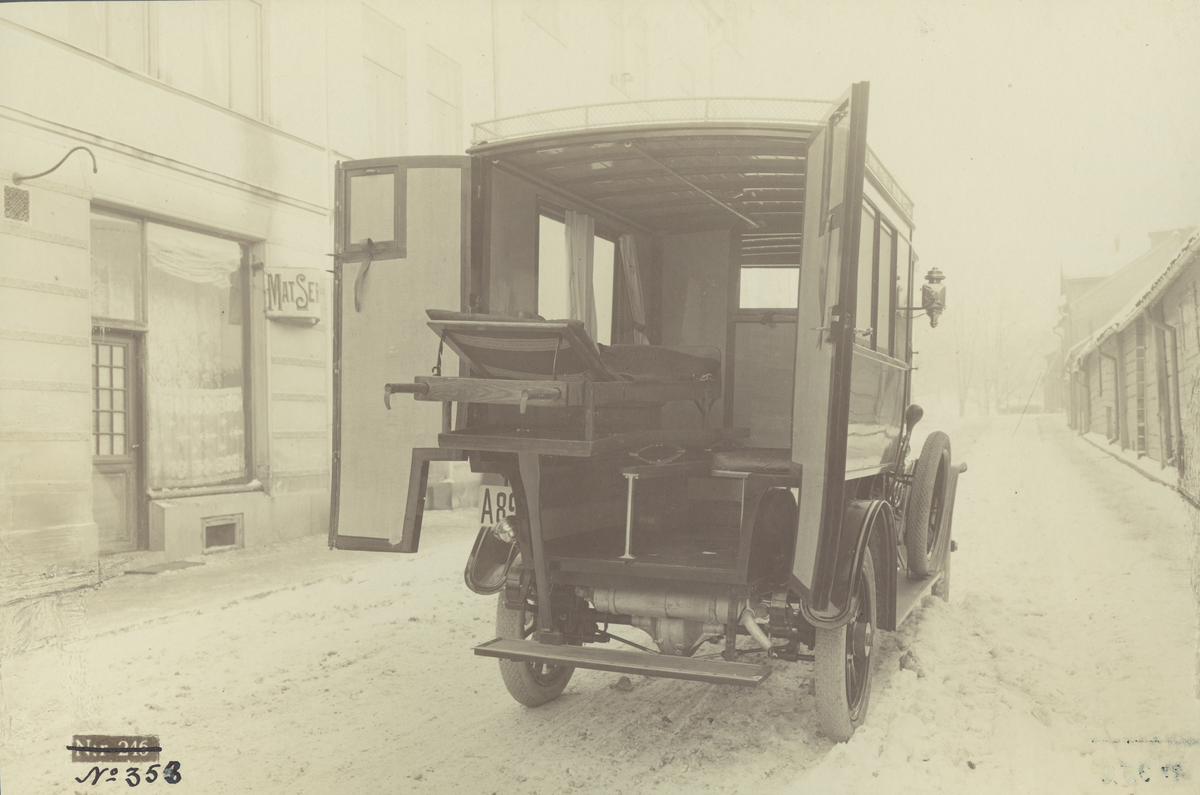 Automobil. Sjuktransport. Ur album för Scania-Vabis.
