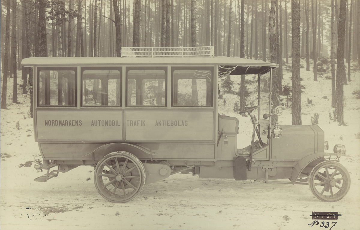 Automobil för Nordmarkens Automobiltrafik Aktiebolag. Ur album för Scania-Vabis.