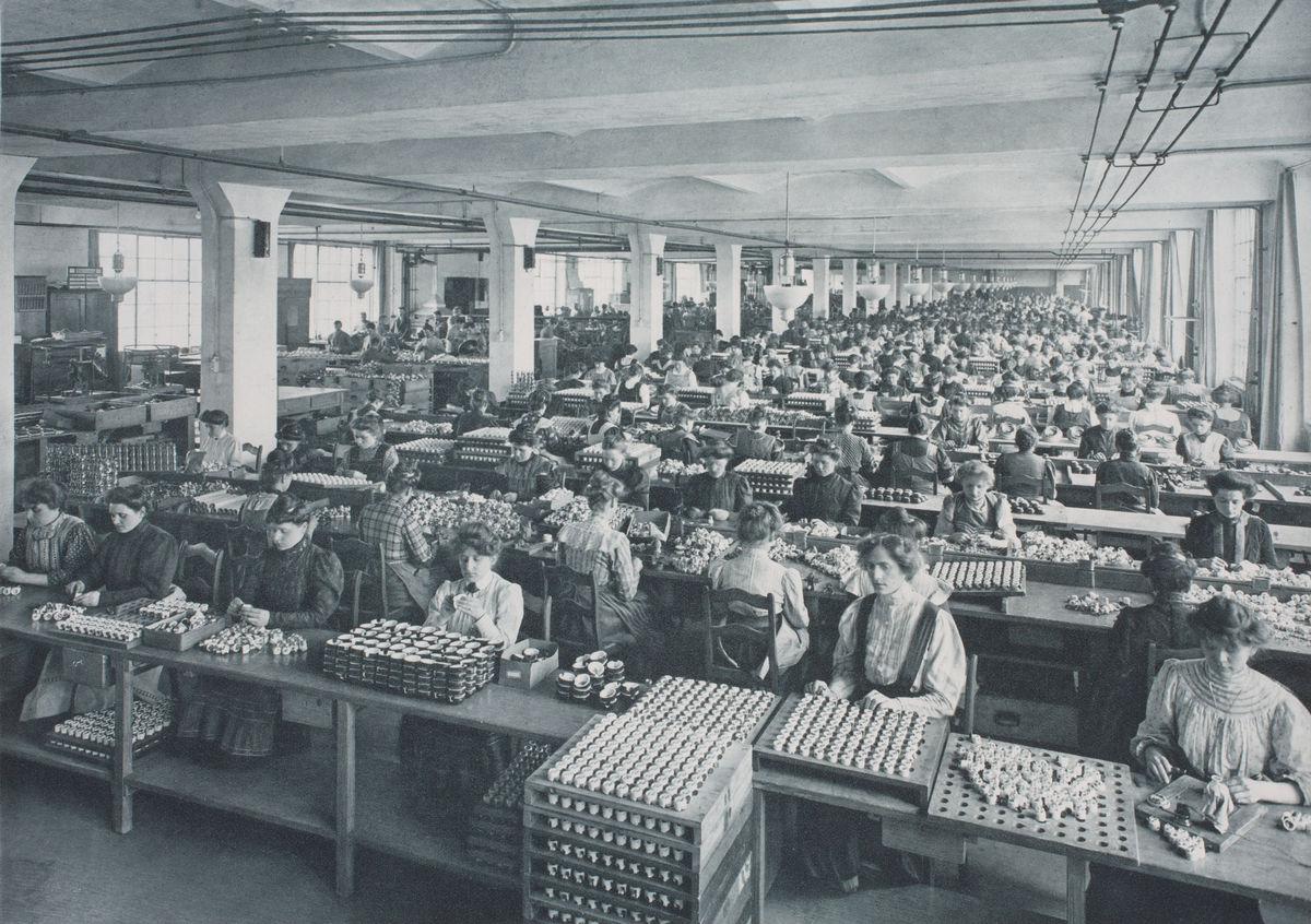 Män i arbete. Apparatfabrik. (Schalttafelbau).