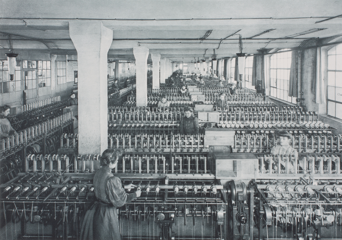 Kabelverk. Sidentrådsspinneri. Kvinnor i arbete.