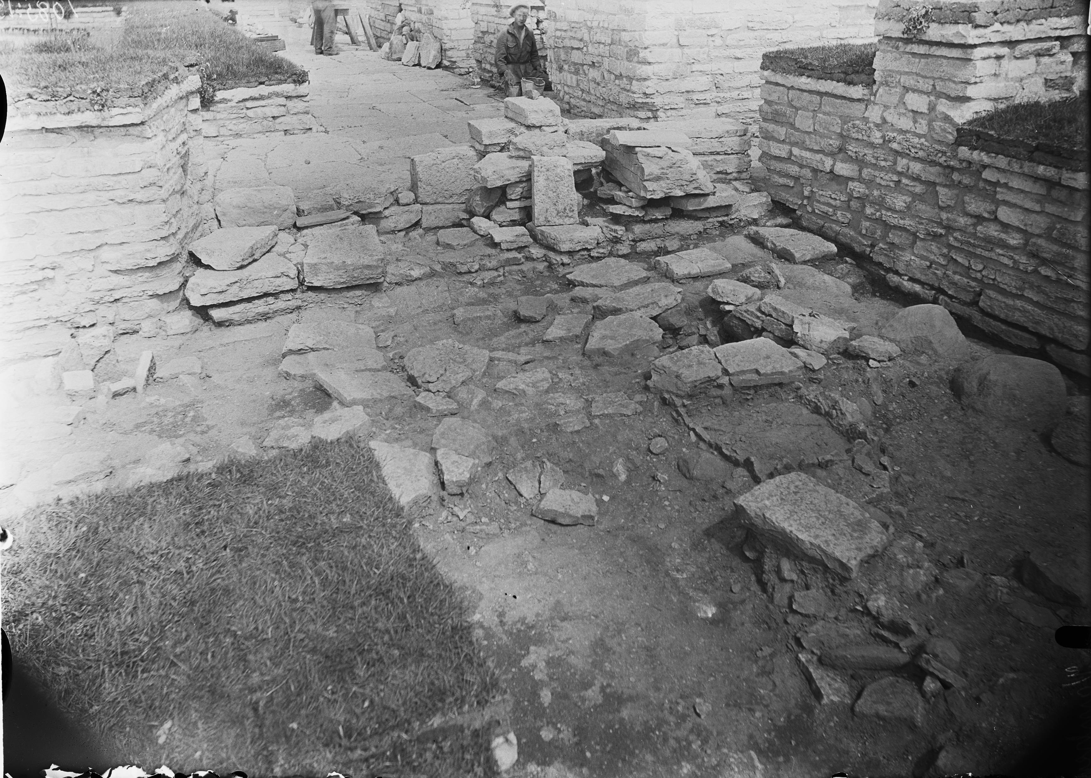 Stensättning i norra delen av området mellan refektoriet och östra längan. Från sydväst.