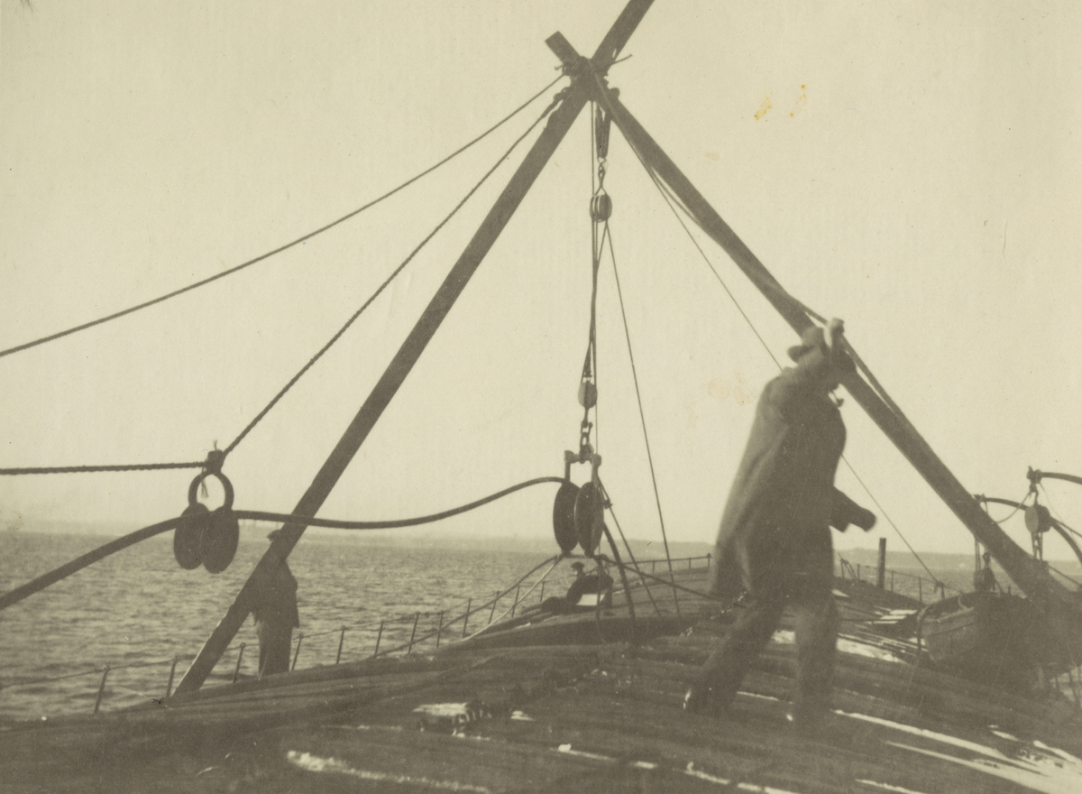 Titel: Kabeldragning Kämpinge - Zarrenzin, oktober - november 1919. Vid Läktare. Ur albumet Telegrafverkets Sjökabelarbeten 1919-1921.