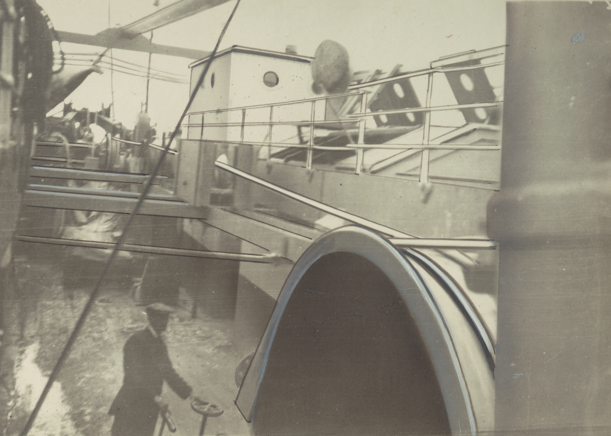 Kabeldragning Nynäshamn - Ire, oktober 1920. Kabeln löper ur. Ur albumet Telegrafverkets Sjökabelarbeten 1919-1921.