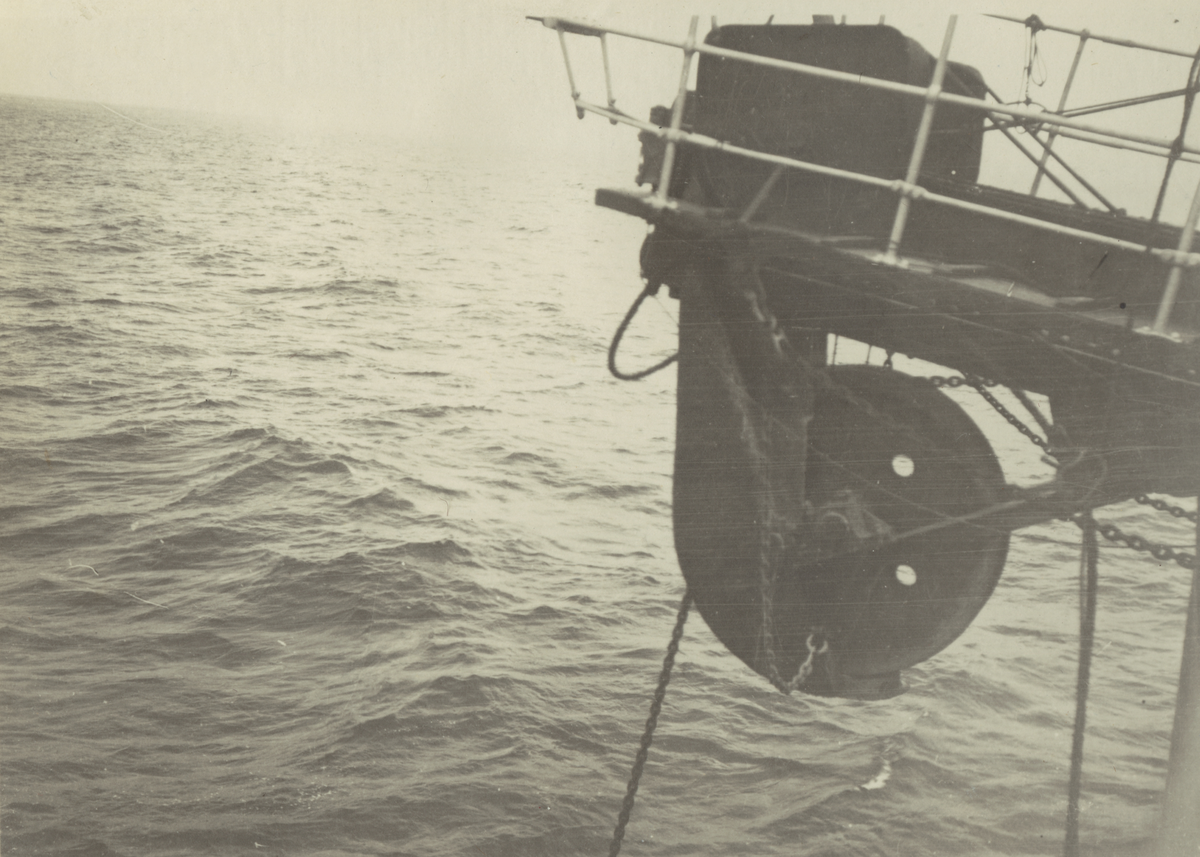 Titel: Kabeldragning Nynäshamn - Ire, oktober 1920. Akterhjul. Ur albumet Telegrafverkets Sjökabelarbeten 1919-1921.