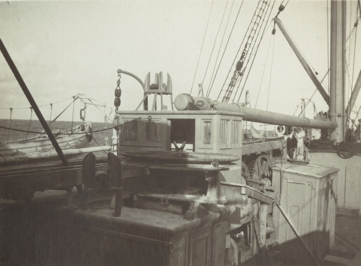 Kabeldragning Nynäshamn - Ire, oktober 1920. Inspelningsmaskin. Ur albumet Telegrafverkets Sjökabelarbeten 1919-1921.