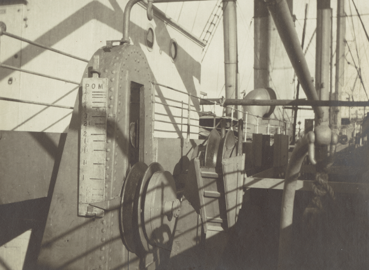 Kabeldragning Nynäshamn - Ire, oktober 1920. Akterdynamometer. Ur albumet Telegrafverkets Sjökabelarbeten 1919-1921.