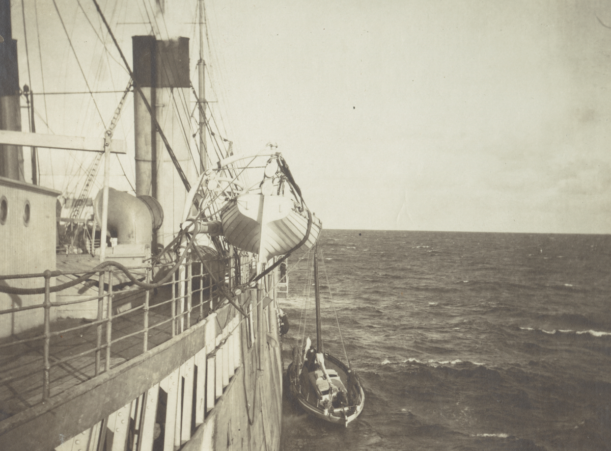 Kabeldragning Nynäshamn - Ire, oktober 1920. Lotsbåt bordar. Ur albumet Telegrafverkets Sjökabelarbeten 1919-1921.