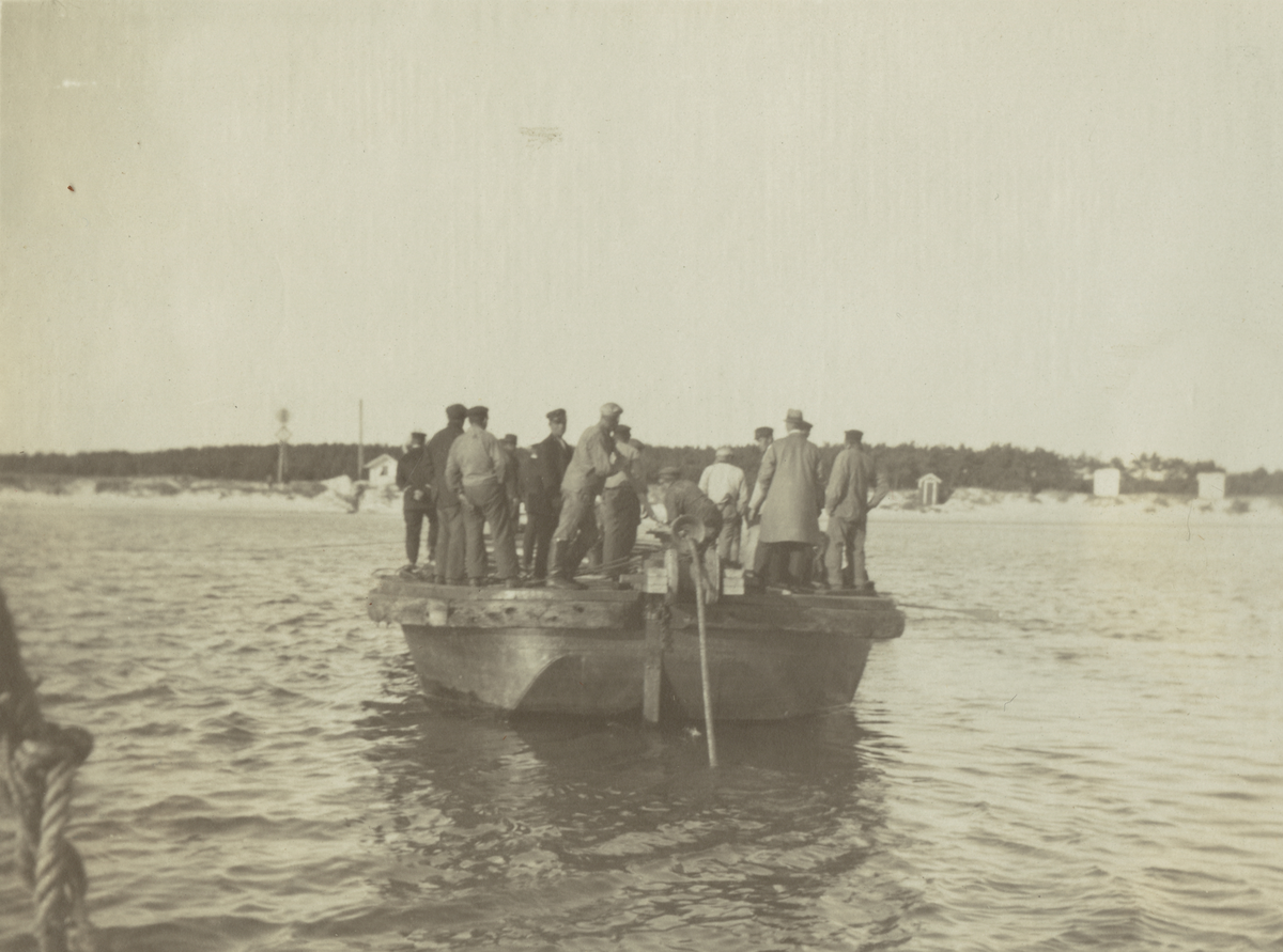 Kabeldragning Kämpinge - Zarrenzin, september 1921. Kabeln indrages i Kämpinge. Ur albumet Telegrafverkets Sjökabelarbeten 1919-1921.
