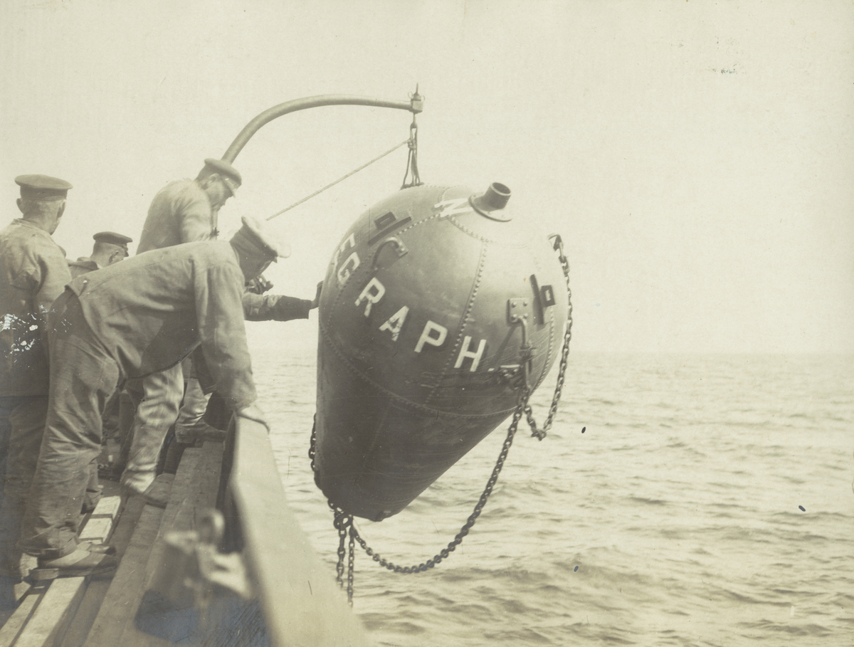 Kabeldragning Kämpinge - Zarrenzin, september 1921. Boj klargöres. Ur albumet Telegrafverkets Sjökabelarbeten 1919-1921.