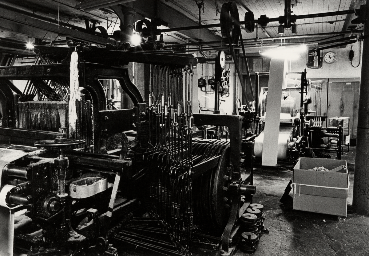 Göteborgs Remfabrik. Vävstol med 14 skaft, på andra våningen. Ur album: Göteborgs Remfabrik 1891-1976.