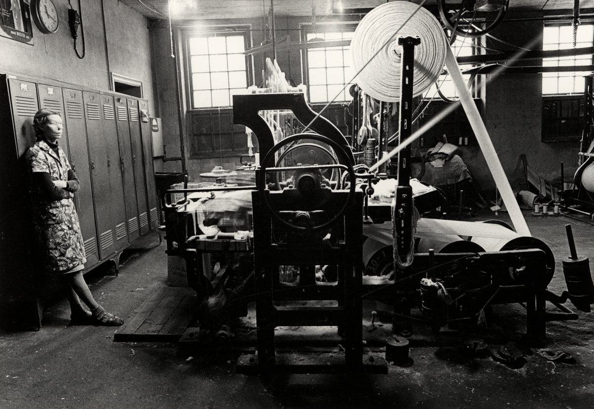 Göteborgs Remfabrik. Övervakning av vävstol i produktion. Ur album: Göteborgs Remfabrik 1891-1976.