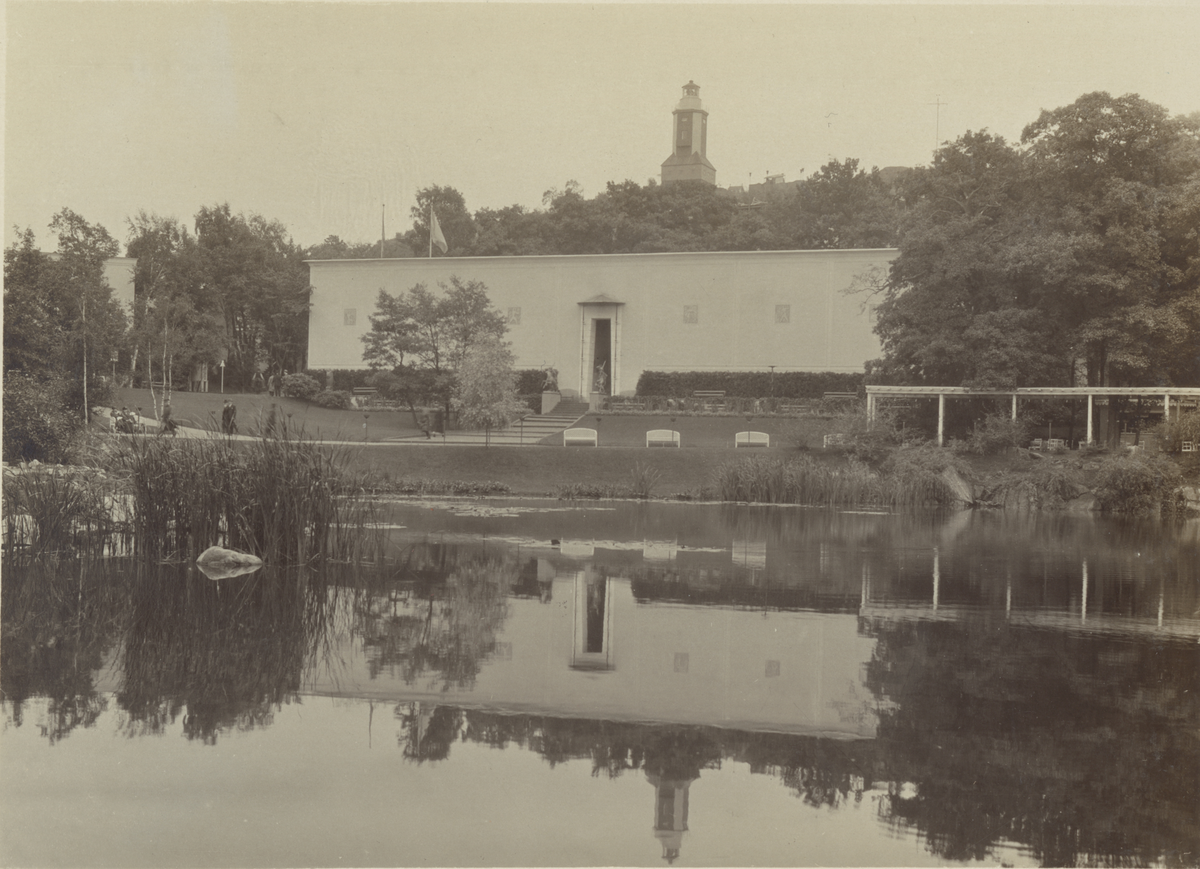 Jubileumsutställningen i Göteborg 1923. Hallen för konsthantverk och konstindustri vid Näckrosdammen. Ur albumet Utställningen Göteborg 1923.