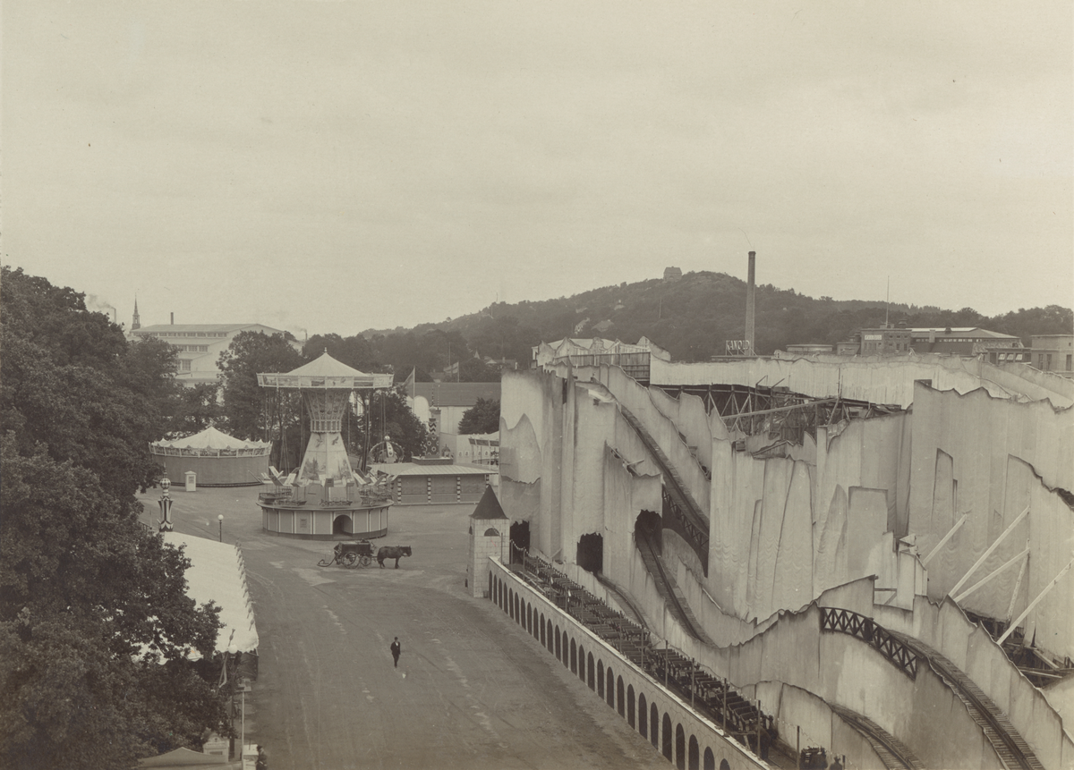 Jubileumsutställningen i Göteborg 1923. Berg- och dalbanan vid nöjesfältet. Ur albumet Utställningen Göteborg 1923.