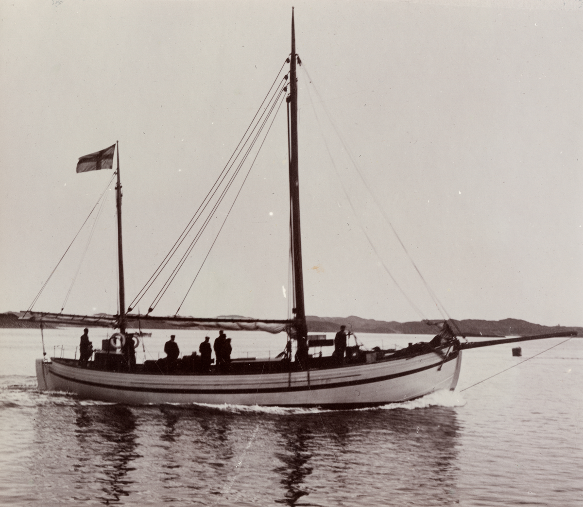 Segelbåt med mrd motor. Bolinder. Ur album: J. & C. G. Bolinder's M. V.A.B. Stockholm.