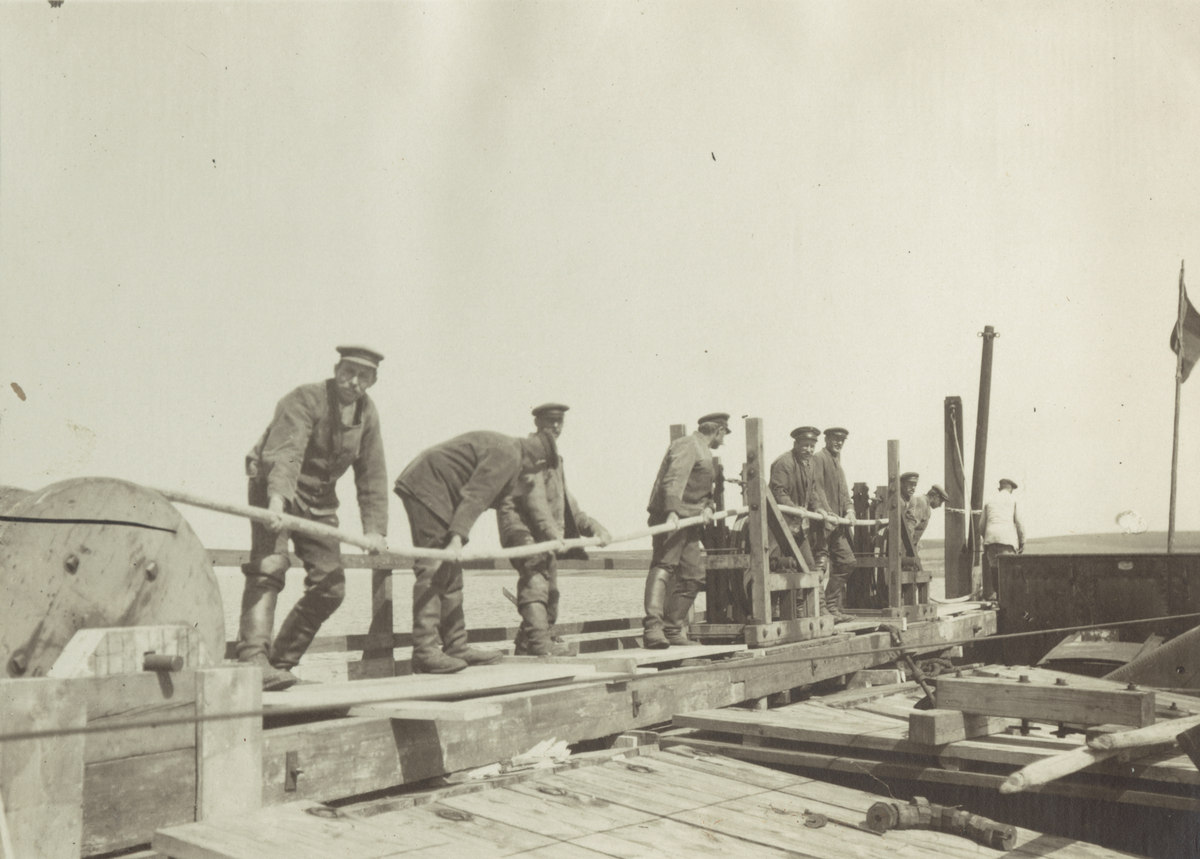 Kabeldragning Kämpinge - Zarrenzin, september 1921. Utläggningen Zarrenzin - Bock i juli. Ur albumet Telegrafverkets Sjökabelarbeten 1919-1921.